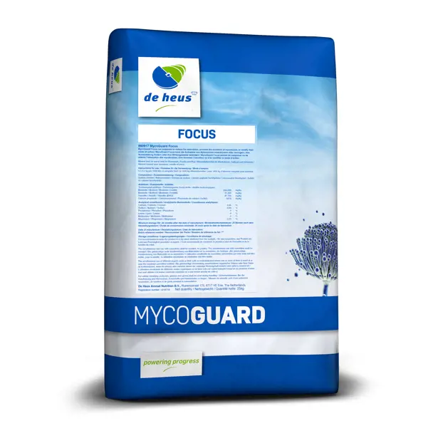 To keep the performance of your animals high, De Heus had added MycoGuard Focus to the formulation. Just mix the concentrate according to the mixing instructions as you normally do and let the additional MycoGuard Focus do its work. De Heus MycoGuard Focus consists of a carefully selected and thoroughly tested mixture of bentonite clays that ensure a fast and strong adsorption of aflatoxins, ensuring they are deactivated and cannot do more harm to your animals.