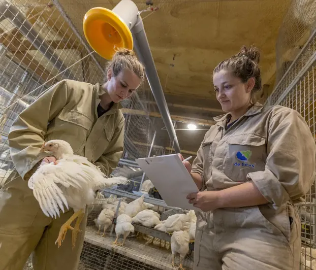 Having the latest and best insights on Poultry will steer your farm forward. Via De Heus you have access to these new insights, gained on our own test farms, R&D facilities and (R&D-)partners. These insights are brought to you on a practical way via our specialists, tools, articles and off course in our feed solutions. With our management tools and our advice, on for example ventilation, husbandry, water management and feed management, you and De Heus work together in achieving your farm goals.