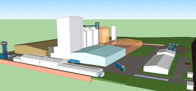 An artistic impression of the future De Heus animal feed factory in Kenya.