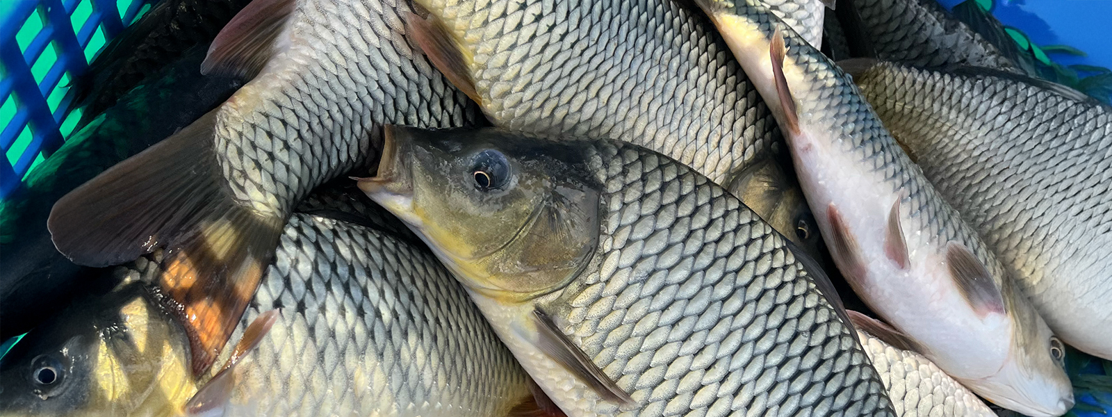 Low fish prices and demand often trigger this question. You can keep the fish longer, but it's best to continue feeding at a maintenance level to prevent them from using their reserves, which would reduce their weight. It’s also beneficial to have a steady supply of fish each week, keeping buyers (typically middlemen) interested and returning regularly.