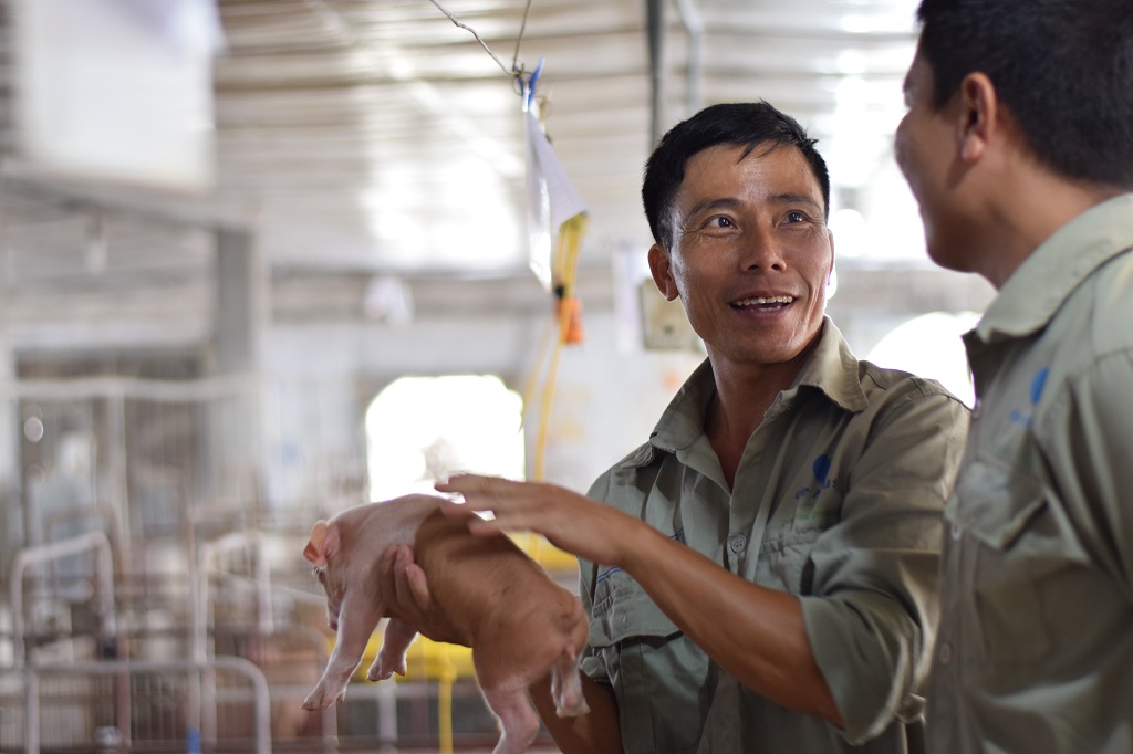 With respect to his plans for the future, Mr Hoc cheerfully discusses his desire to become part of the chain of clean pork in the North in which De Heus works alongside strategic partners including farms and slaughter companies to produce high quality pork products for export. He believes that joining the value chain will bring many benefits to both the farm and consumers. For a farm owner like himself, it will remove the uncertainty and lack of stability in livestock production and prove the quality of his product to consumers. He has been preparing for this next step by obtaining VietGAP certification for his farm at provincial and central level. Each part of the farm process is carefully noted and managed for the purpose of data management when he is ready to join the value chain.